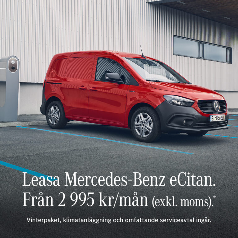 Just nu kan du köra helelektriska Mercedes-Benz eCitan från 2 995 kr/mån ( ex moms) med operationell leasing.
