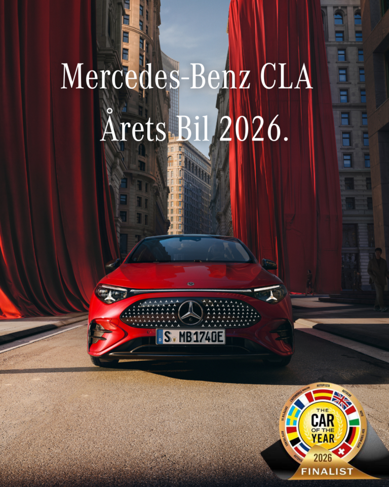 Nya helelektriska Mercedes-Benz CLA har utsetts till Årets Bil 2026 – en av de mest ansedda utmärkelserna inom den europeiska bilindustrin. Priset delades ut efter att en internationell jury bestående av 59 motorjournalister från 23 länder röstat fram CLA som vinnare i ett mycket konkurrenskraftigt startfält.